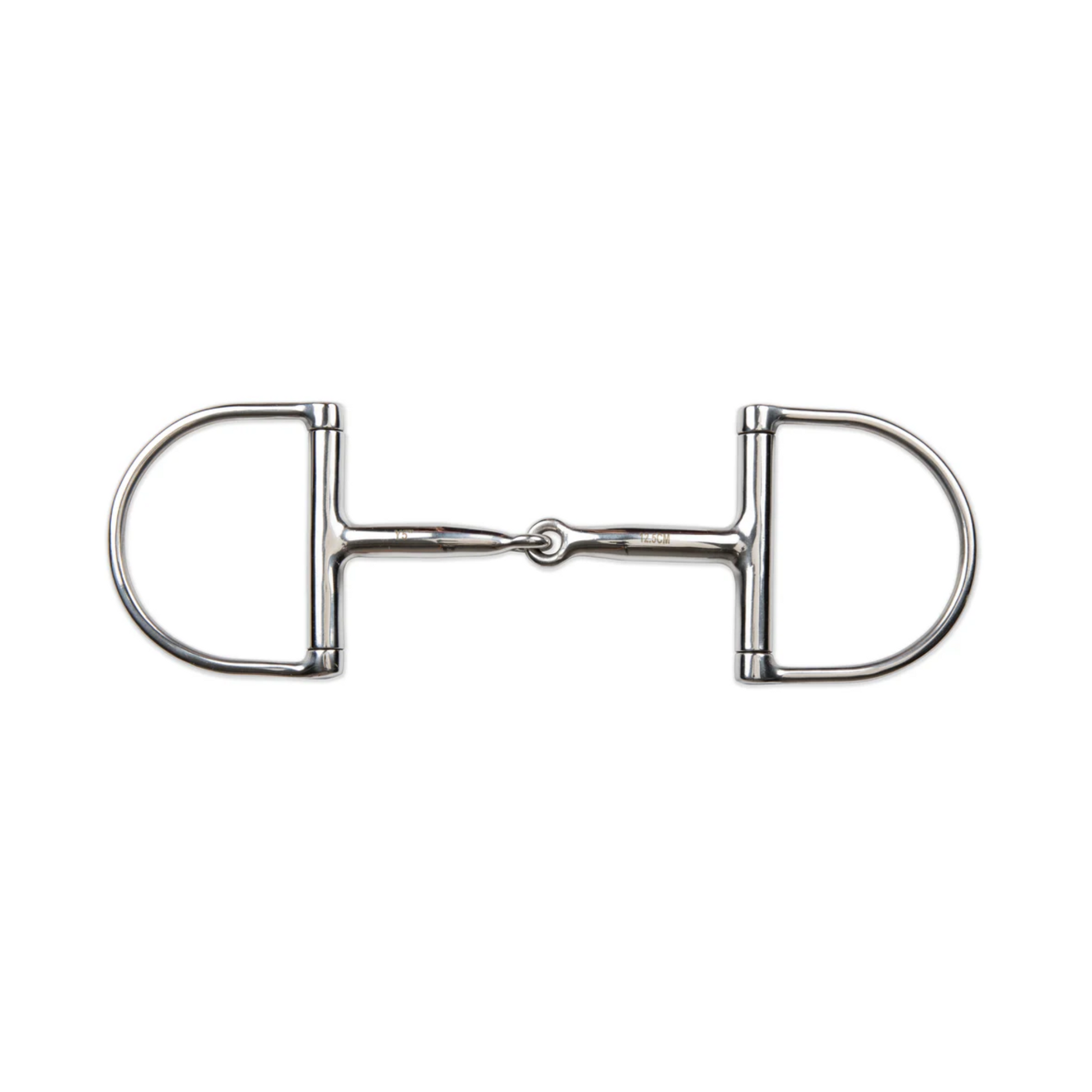 Crafted from durable stainless steel, this bit features classic D-rings suitable for the show ring. The single-jointed mouthpiece provides gentle yet effective action on the bars, lips and palate, fostering clear communication between horse and rider. The carefully crafted cheeks of this snaffle promote stability within the horse's mouth, encouraging confident and controlled movement.