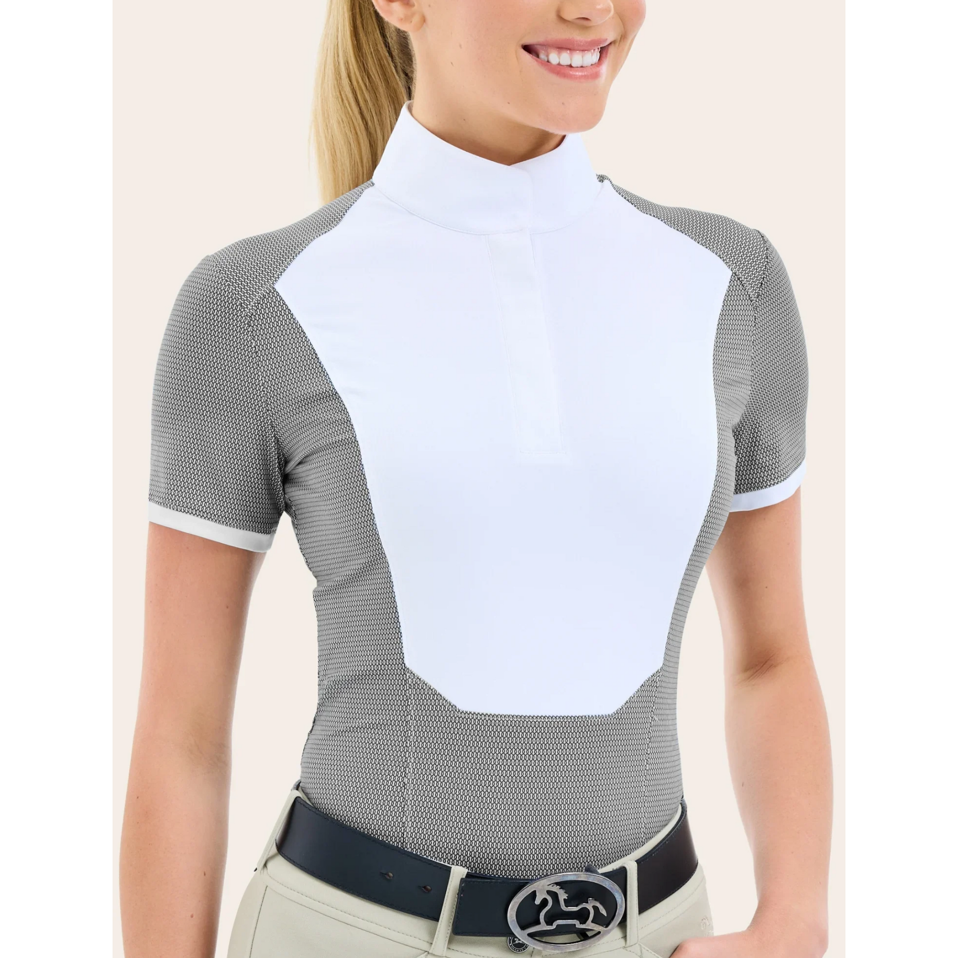 Designed to bring extra style and versatility into the show ring, the Tessa is the perfect addition to every rider’s wardrobe. Its modern seam lines and silky, cooling fabric ensures that rider’s stay comfortable and confident. The unique prints, paired with a white collar and front bib, elevate its style without compromising the classic look under a show coat.